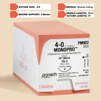 The MONOPRO 4-0 Poliglecaprone 25 Suture with a 36-inch FS-2 reverse cutting needle, product code PM922, is the #1 trusted choice for absorbable veterinary sutures in the United States. This suture exemplifies commitment to quality, efficiency, and patient care, combining advanced material properties with user-friendly design. It's the preferred choice for veterinarians nationwide, offering optimal handling, visibility, and healing outcomes, making every suture count in the pursuit of veterinary surgical excellence.