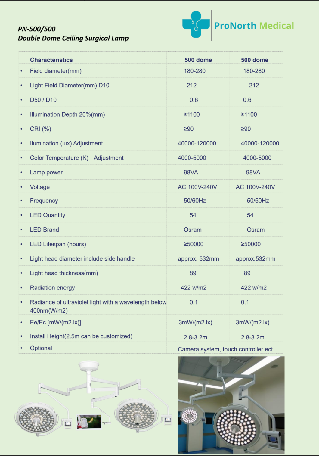Brightness: Each dome 40,000 to 120,000 lux, adjustable in 10 stages