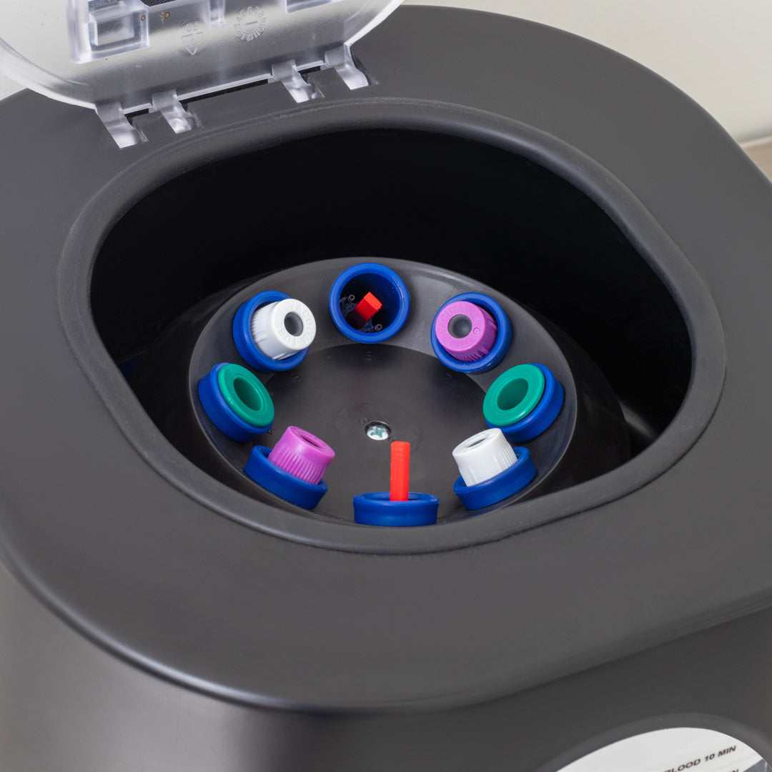 Spin test tubes, micro tubes and microhematocrit tubes in one centrifuge with no rotor changes!