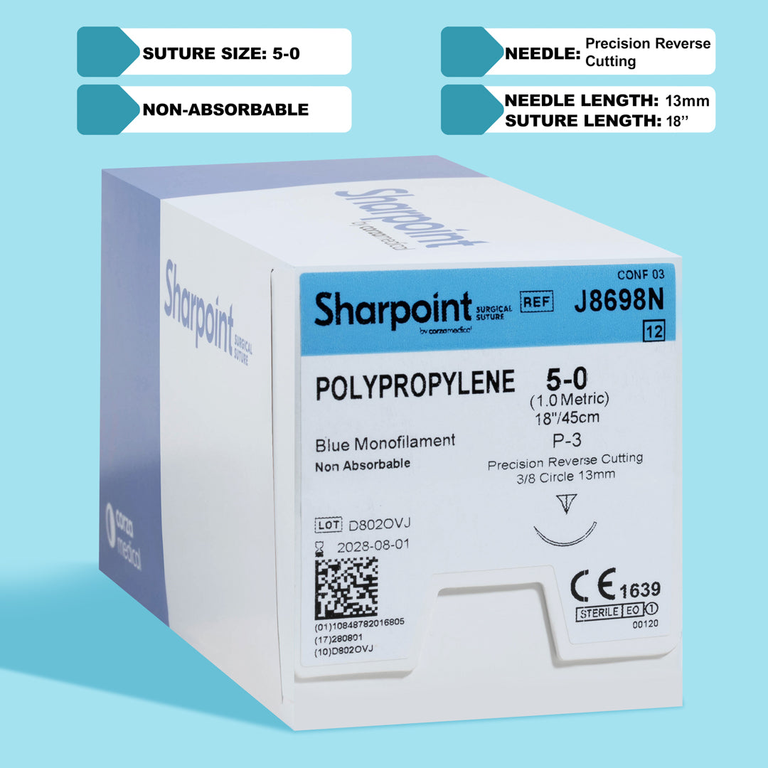 Enhanced Suturing Precision: The P-3 needle, known for its precision reverse cutting edge, is specifically designed for delicate tissue handling, minimizing trauma.