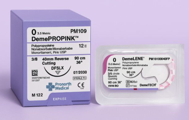 DemePROPINK™ Polypropylene Sutures – 0 USP, 40mm Reverse Cutting Needle, 90cm (Pack of 12) | PM109 (formerly F8690)